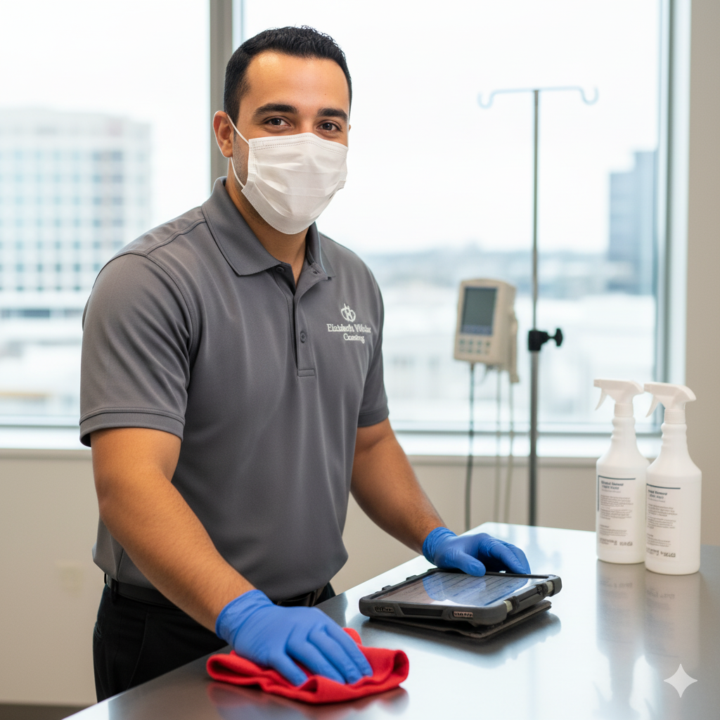 We are trained in advanced infection control and utilize specific methodologies for high-risk medical environments, using hospital-grade, EPA-approved disinfectants and strictly following cross-contamination prevention protocols.